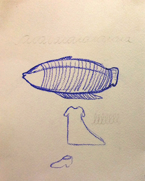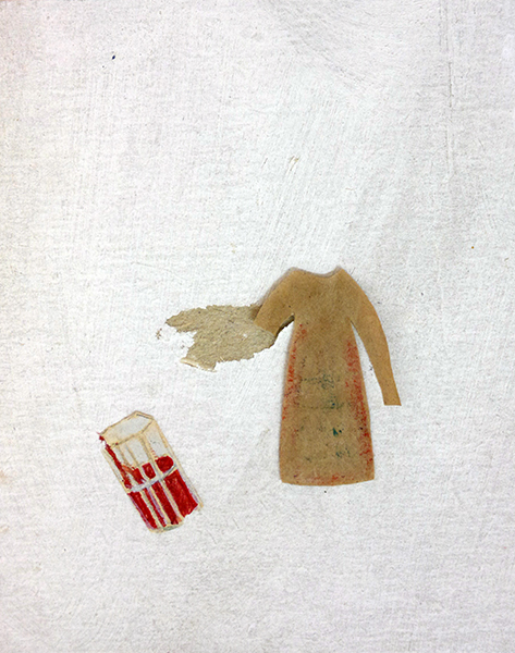 Tusche, Luftpost Papier, Gouache, Stoff auf Pappe